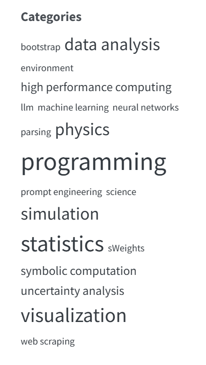 We save the tags as JSON in a file that Quarto (the software that generates this blog) can include to generate the categories for the posts shown on the website. If you want to see how that works, go to the git repository of this blog and look into the file preprocess.py.